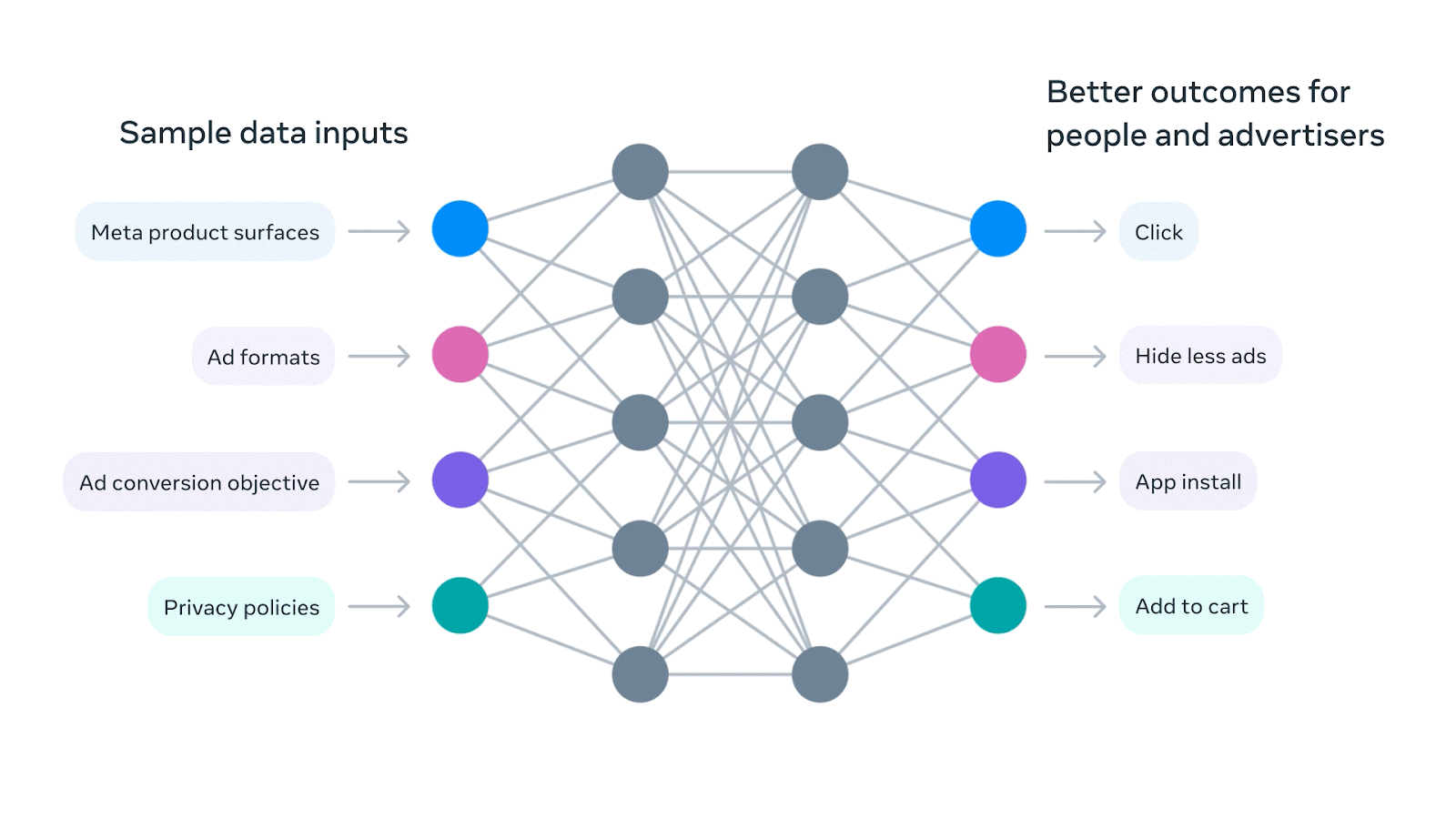 Think of it as a partnership: you provide the creative and tracking signals, and Meta’s AI figures out who to show it to.